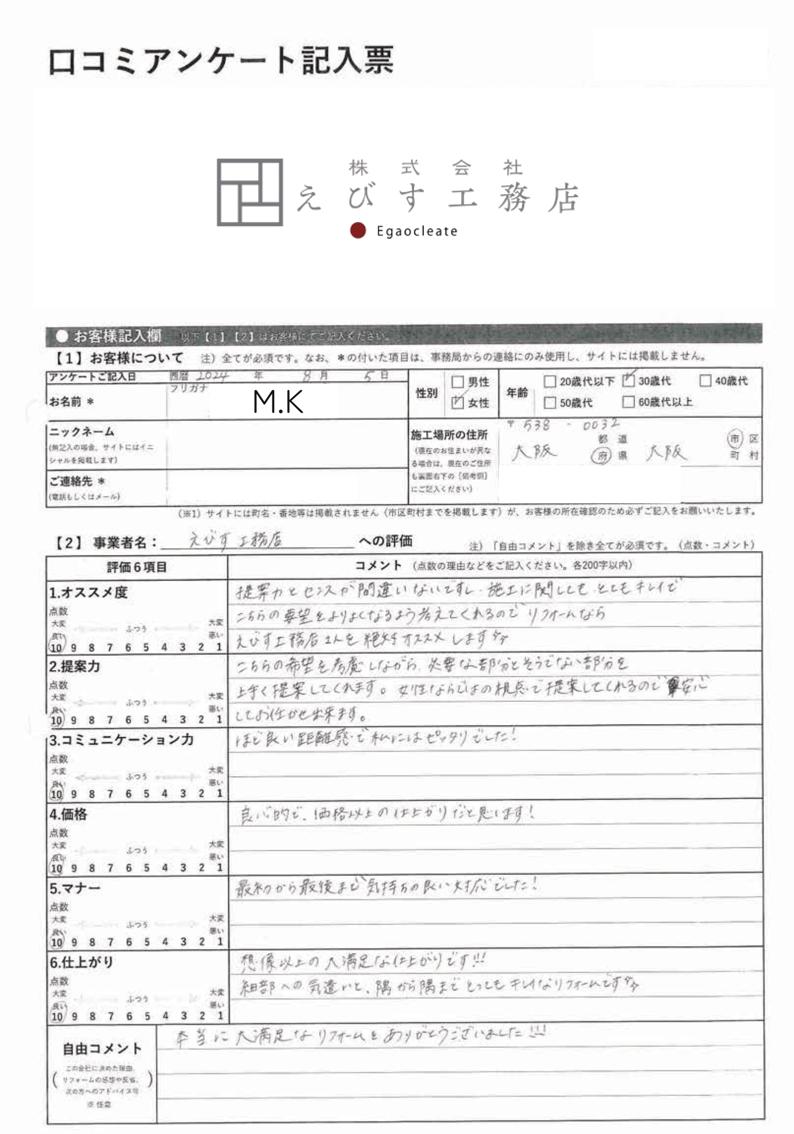 【お客様の声】M.K様
