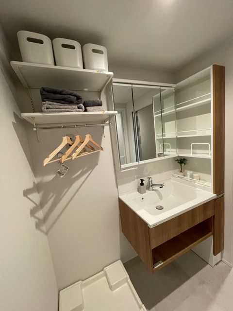 ハンガーパイプ付なのでハンガーをかけてもタオルをかけても良✨