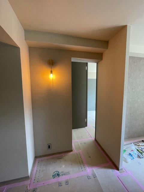 まだ施工中になるので養生も捲れてませんが、照明がよすぎて思わず写真撮ってしまいました(^^♪