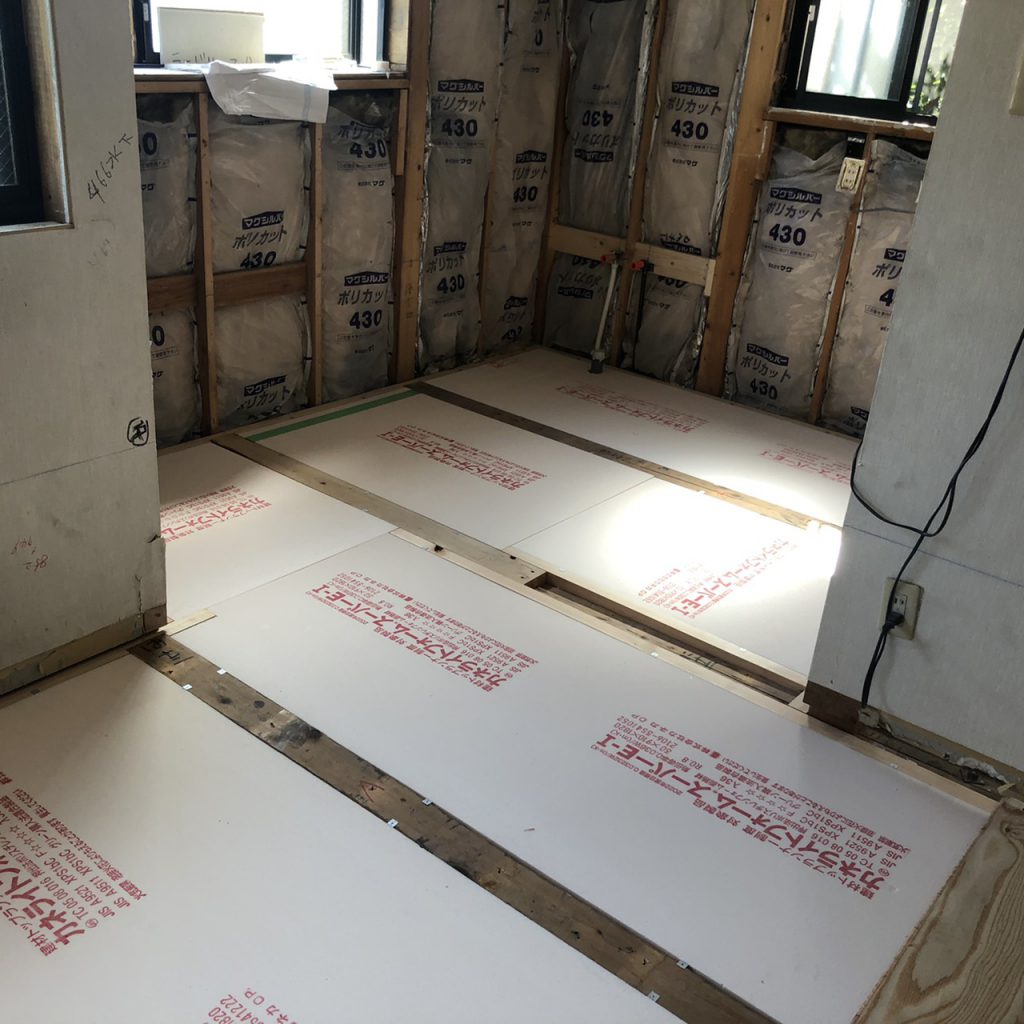 床・壁・天井に敷き詰めていきます。。。