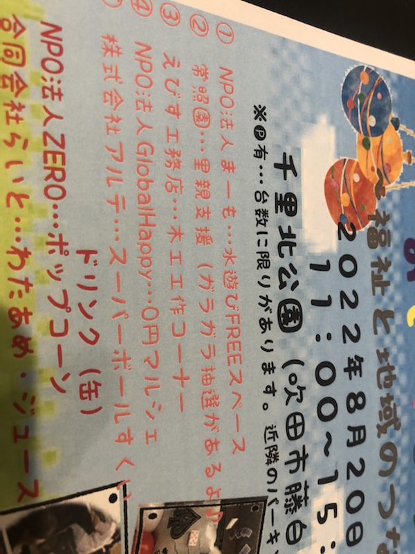 『8月20日に千里北公園で福祉と地域のつながりでお祭りするから参加してもらえませんか?』との事