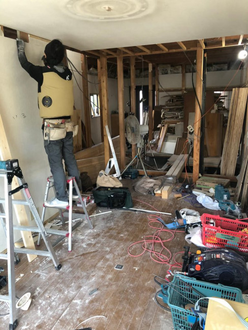 ひっさびさの木造戸建てのフルリノベーション。 柱を移動したり梁を補強したり階段をかけかえたり