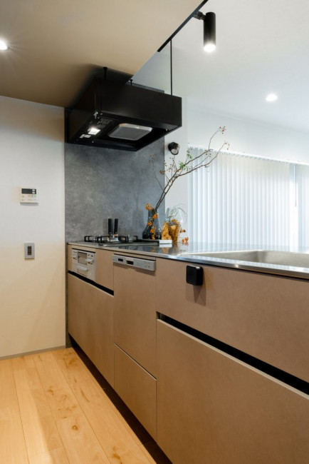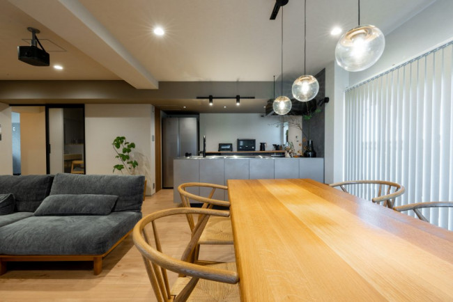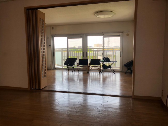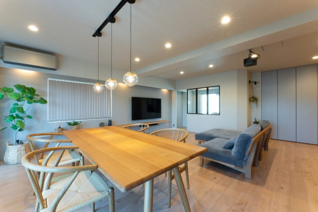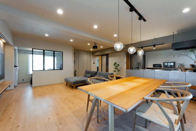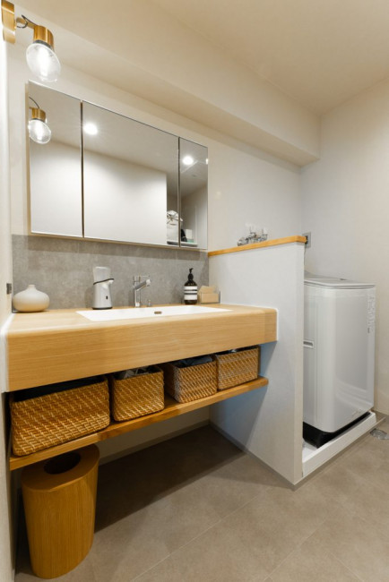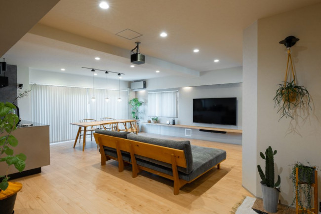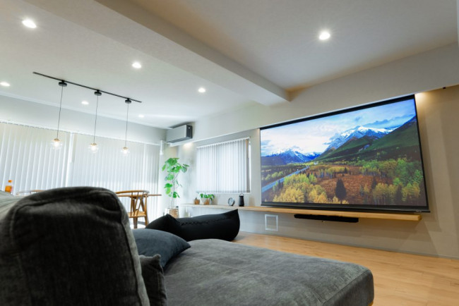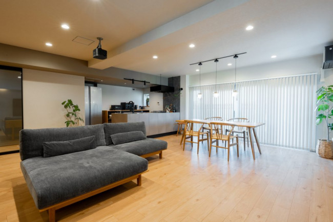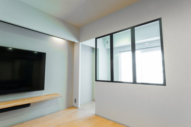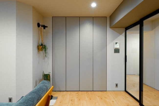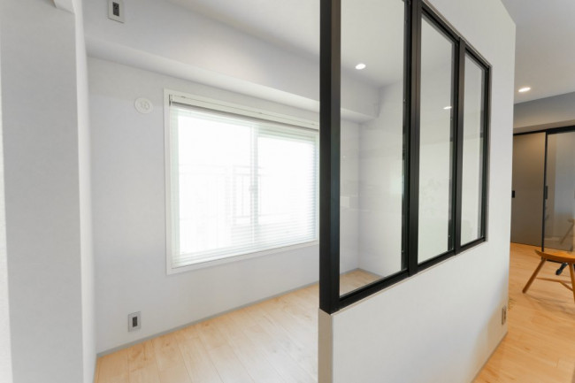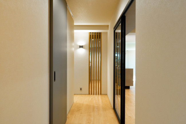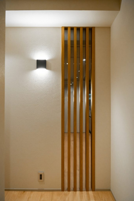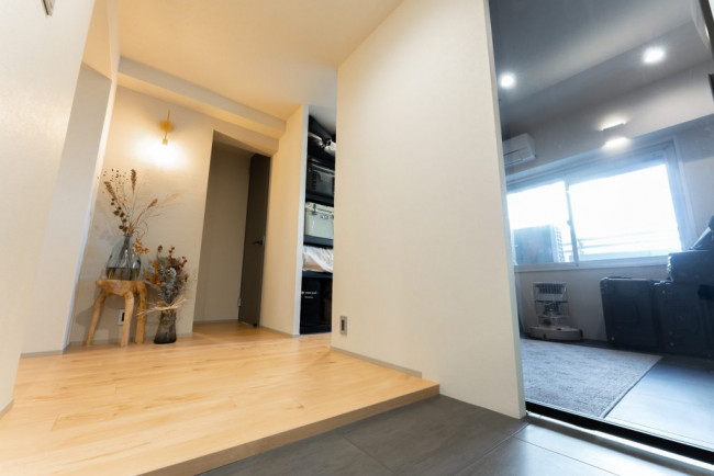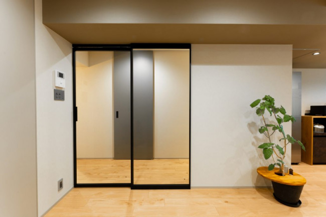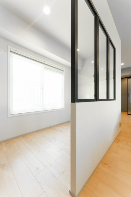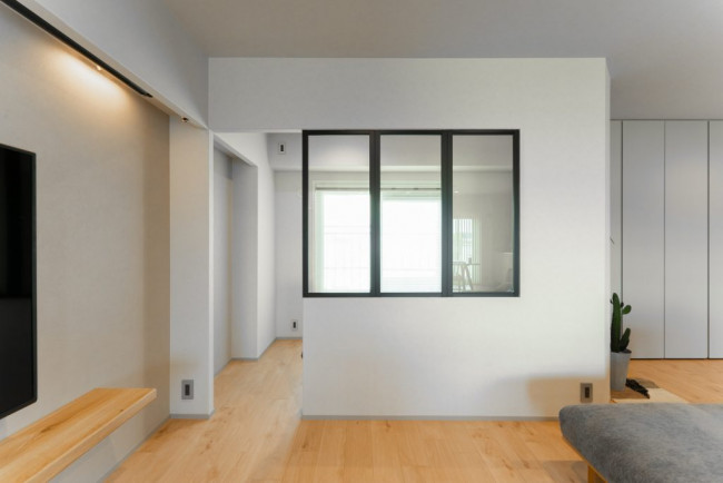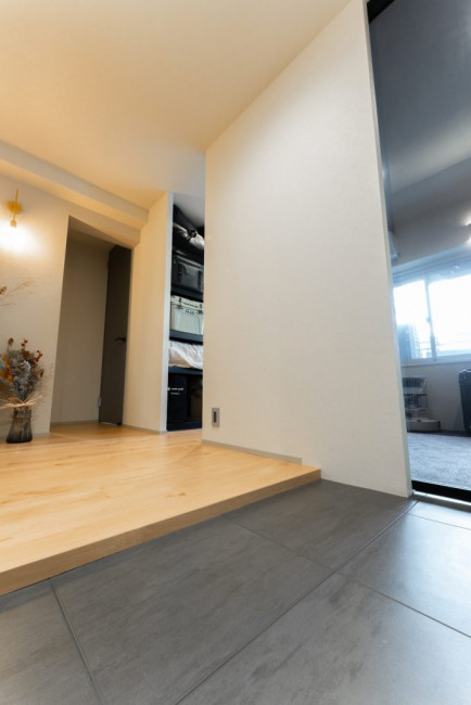 ![]() 間仕切り壁があることで視線がうまく遮られ、土足エリアとの境目が見えなくなっている |