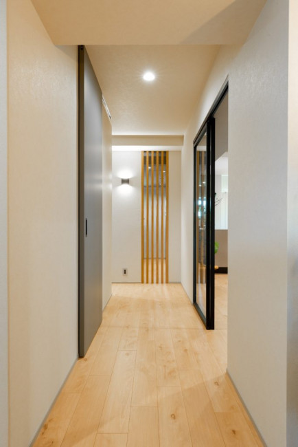 お部屋同士を繋ぐ導線となる廊下は、すべての部屋に違和感なく調和のとれた空間にすることで全体の統一感がぐんと上がる場所でもあります。
