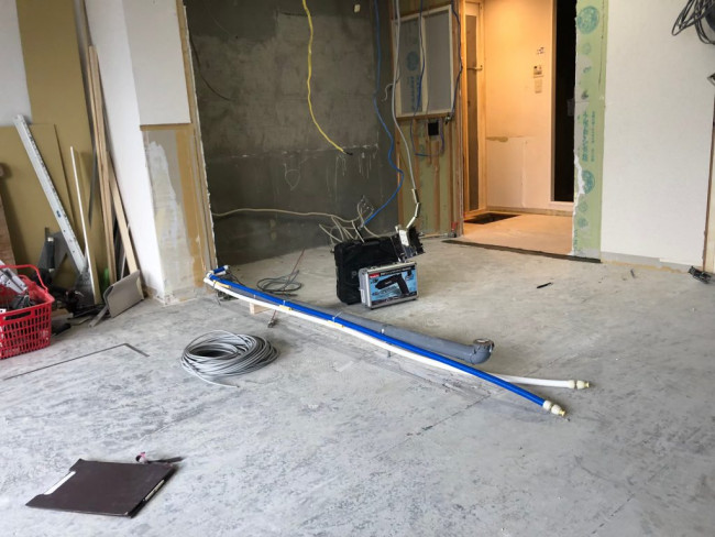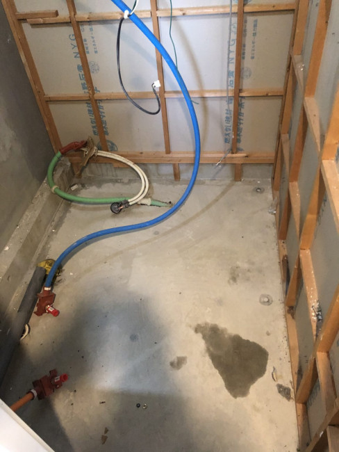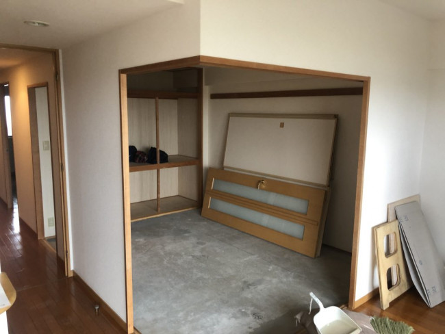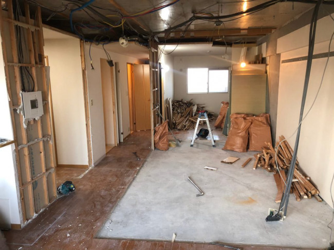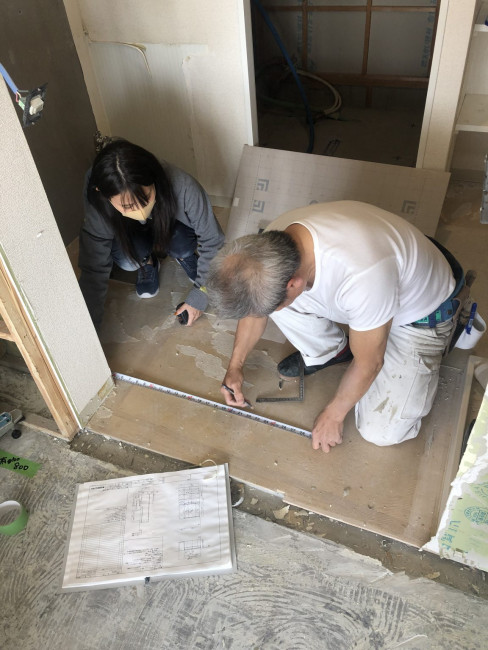 ![]() 畳のあったへこんだ床はフローリングを貼る為土間を打つ |