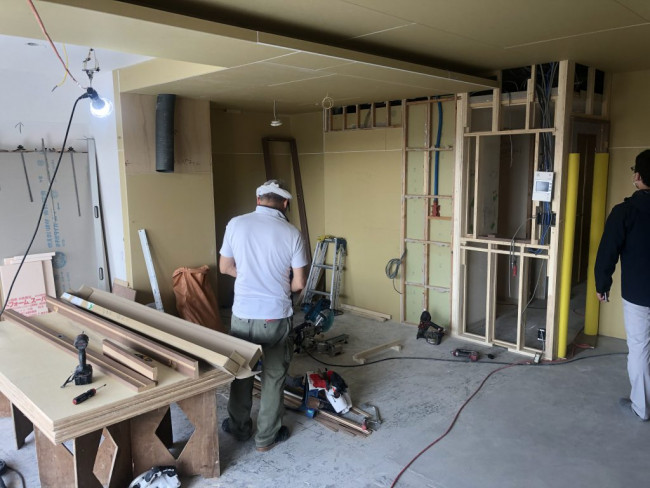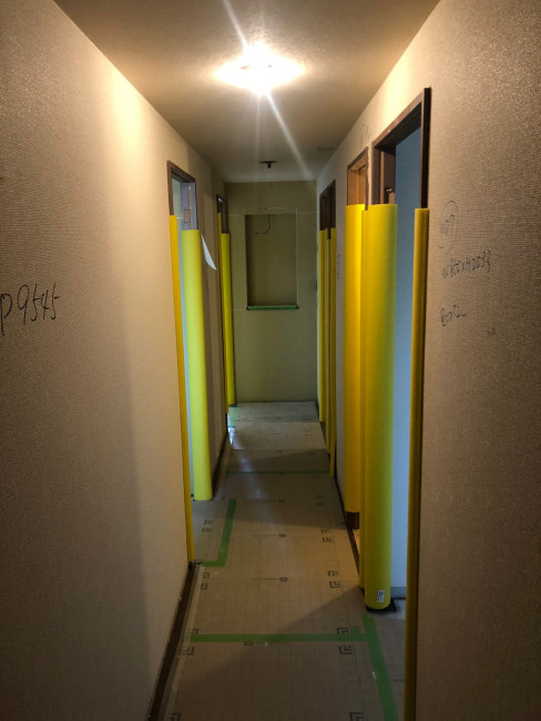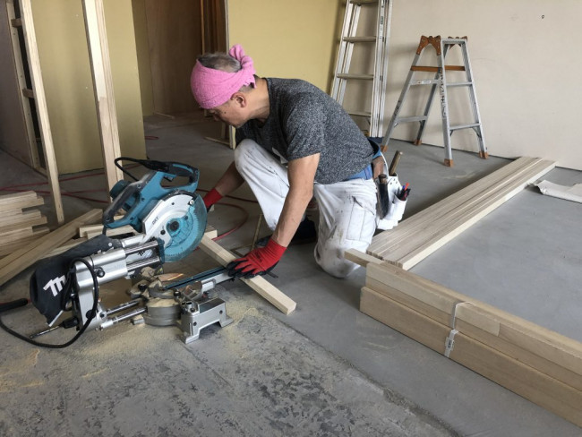 ![]() 新しい扉の枠を付けたら傷つけないための養生は忘れずに! |