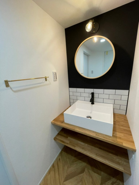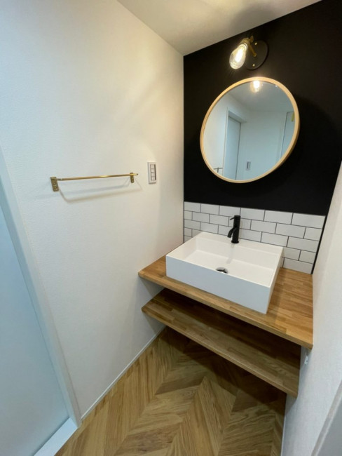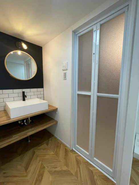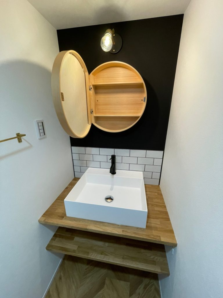 ちなみに、洗面スペースに使われている鏡は、開けて収納もできます