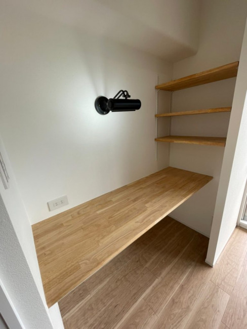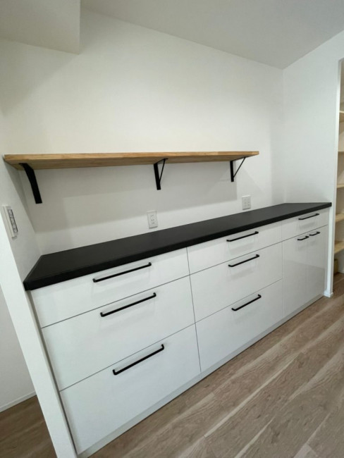 広くなったリビングには、ワークスペースとなるカウンターも設置してます。