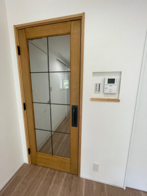 ![]() 左手側が廊下とリビングを仕切る扉。右手に少し見えるのが洋室の入口 |