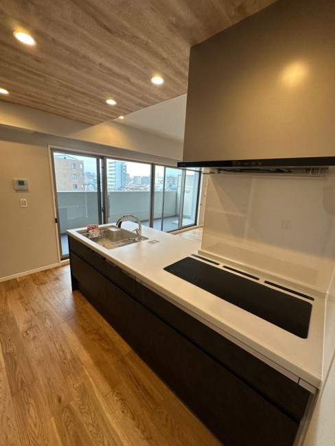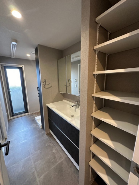 収納には扉を設置せず開放的に見せることでお部屋の広さを視覚的に確保しています。