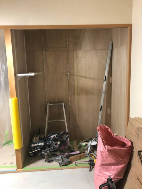 もう半分は奥行きを利用してL型の可動棚を設置する事としました☺