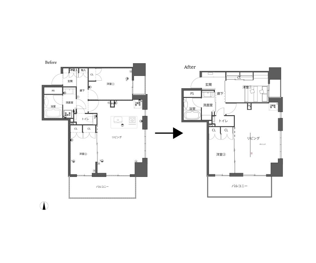 ![]() 左手側の壁をクローゼットとワークスペースにリフォーム |