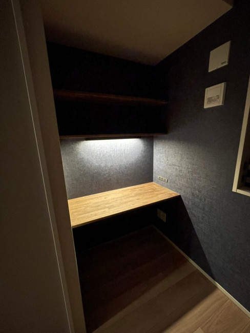 既存の収納を一度解体し、別ヶ所に収納を造作。さらにワークスペースも造作します。