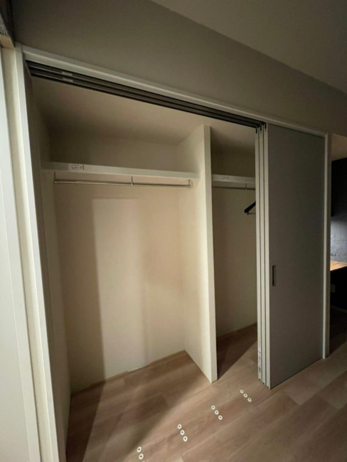 ちなみにクローゼットの扉にある白い丸のものは振れ止めです。扉と白丸にマグネットがあり、磁力で扉の振れを防止します。