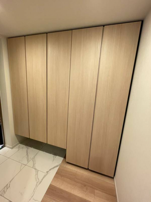 玄関収納も新調!建具と揃えてグレー色に(*^^*)