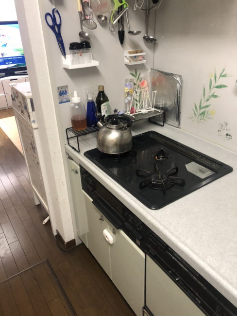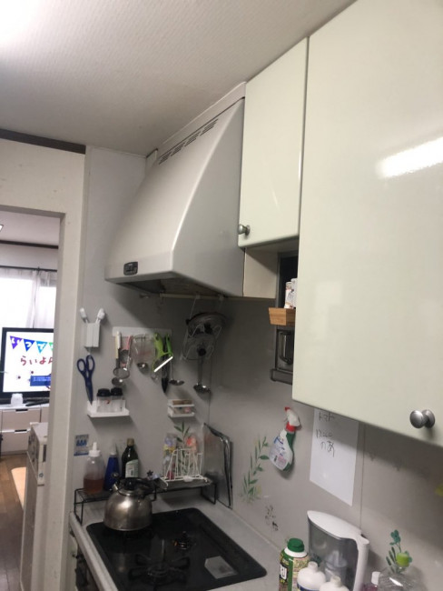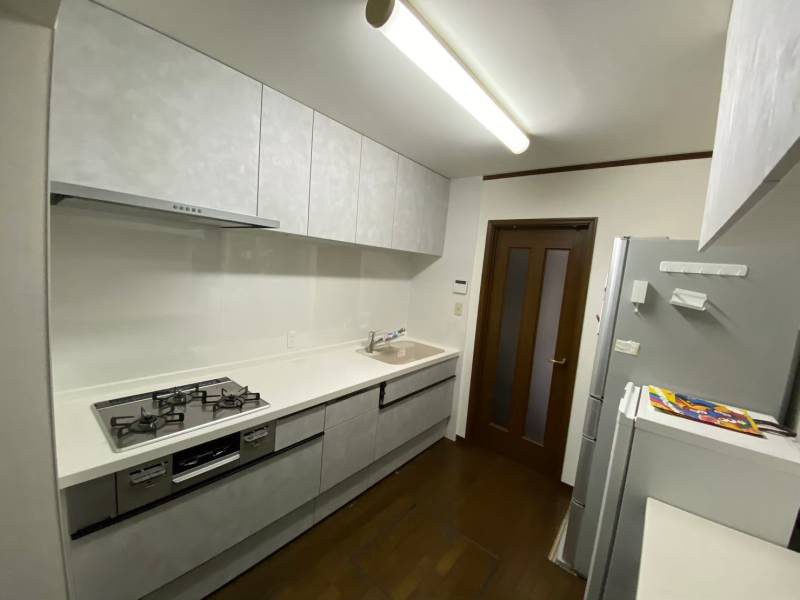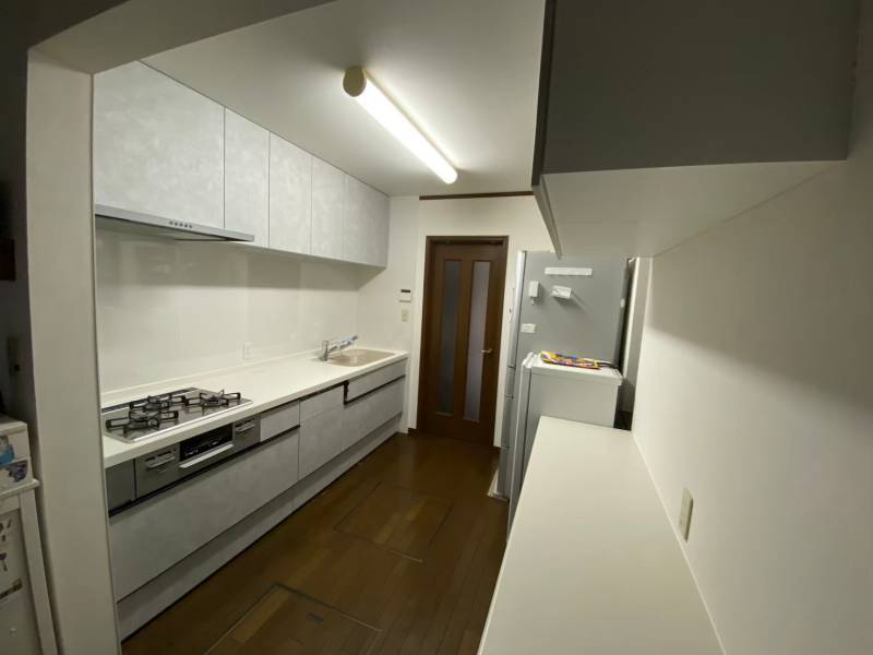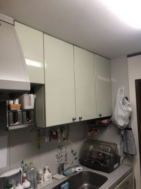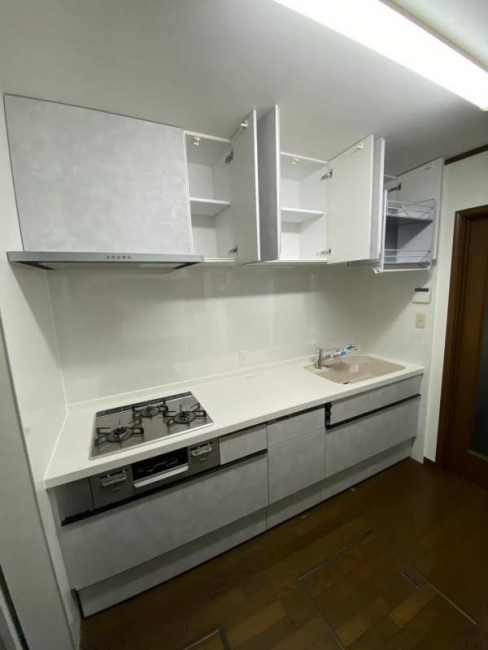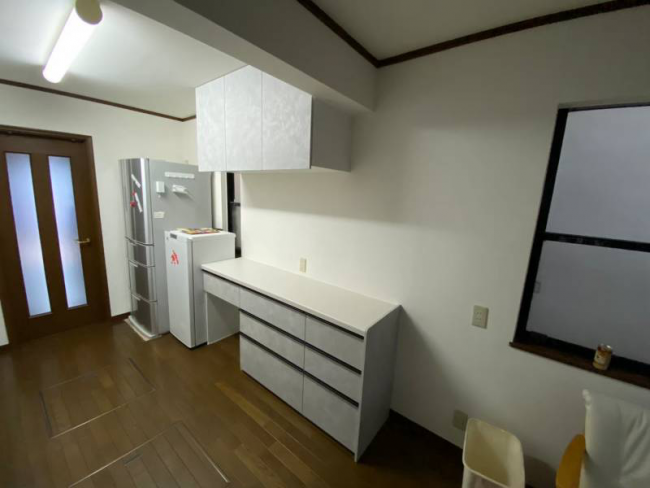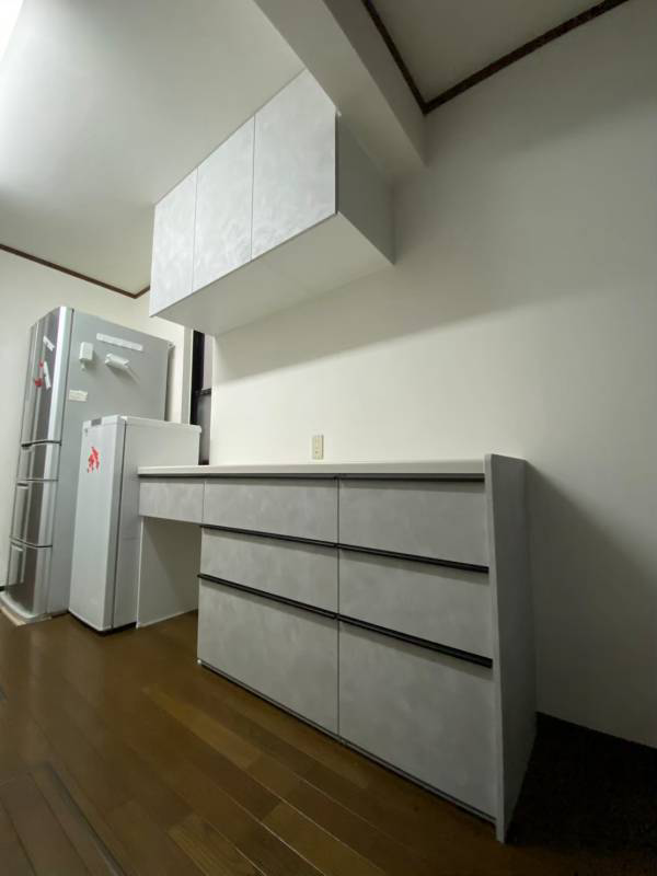 キッチンの入替と、キッチンの背面に新たにカップボードを取り付けました。