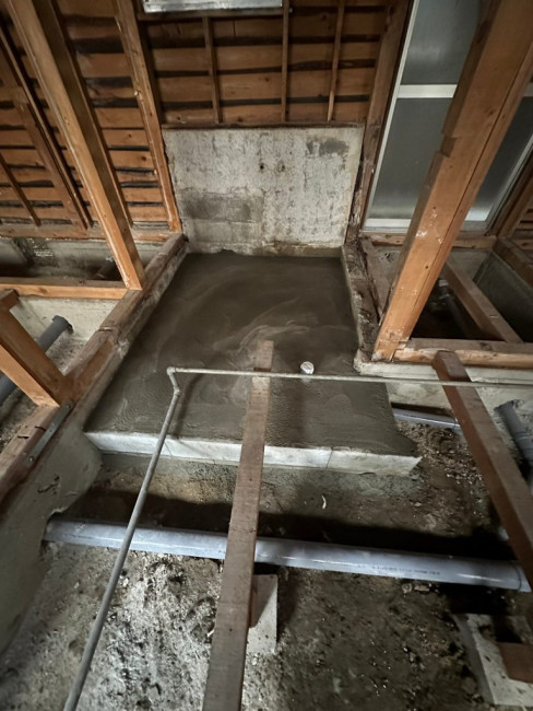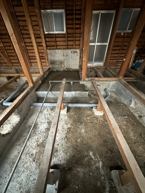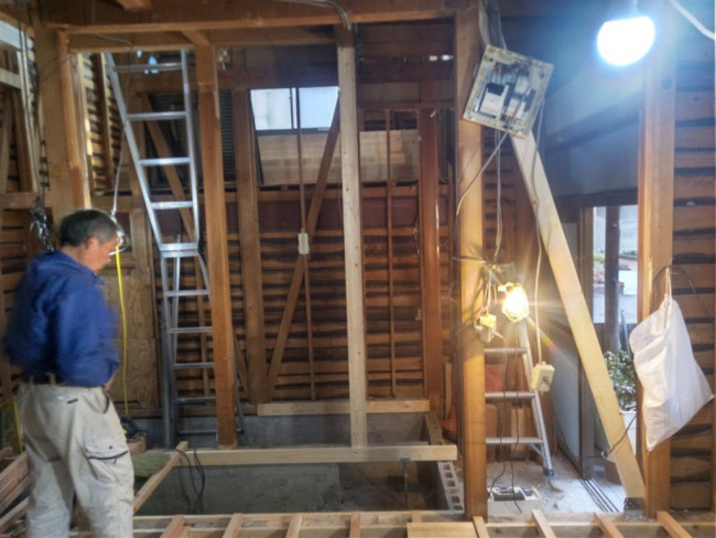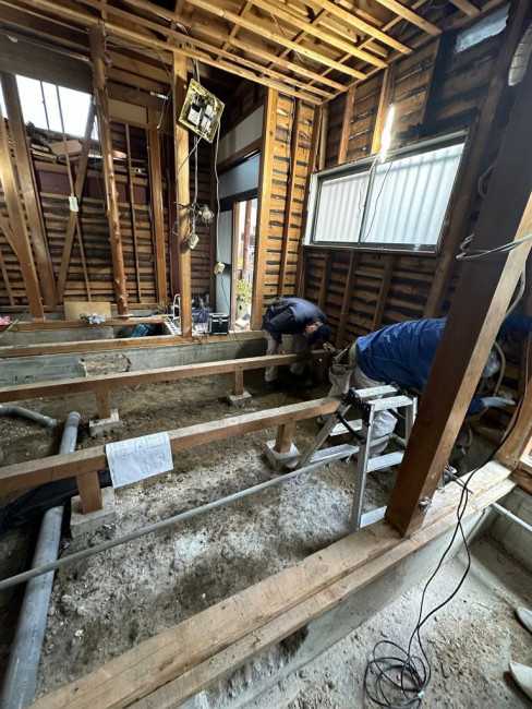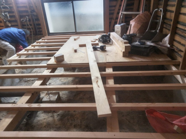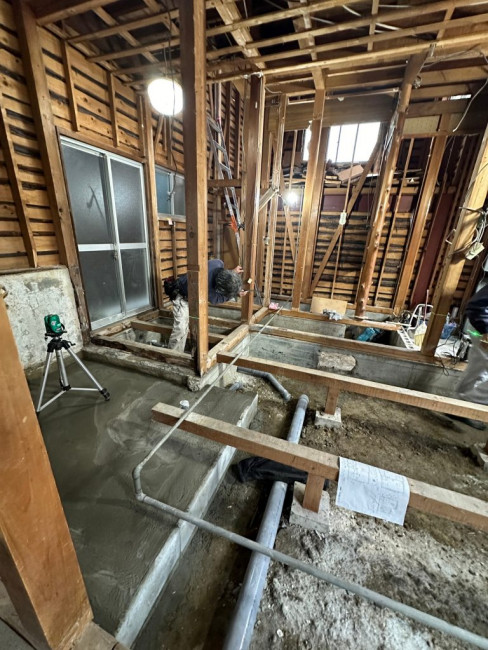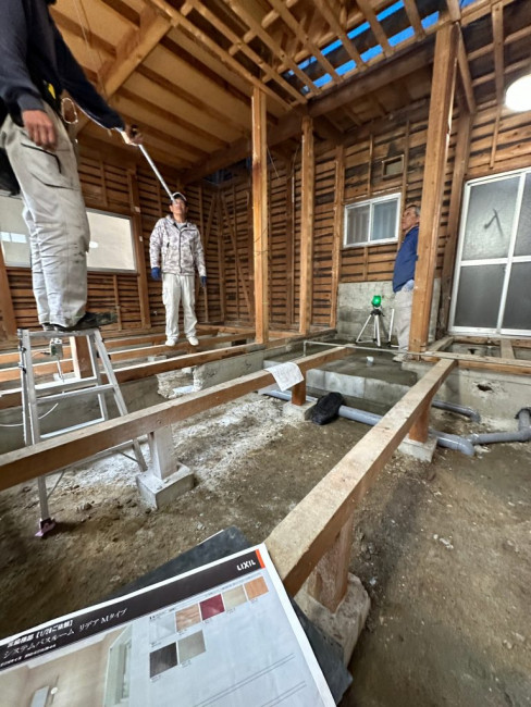また傾きがあった場合(大抵の場合、地面が変動する関係で家も若干の傾きが出ます)床などに傾きが出ないように調整して下地を組んでいきます。