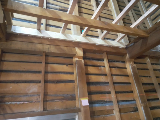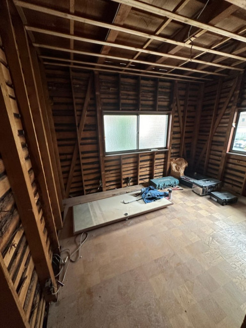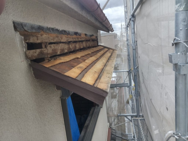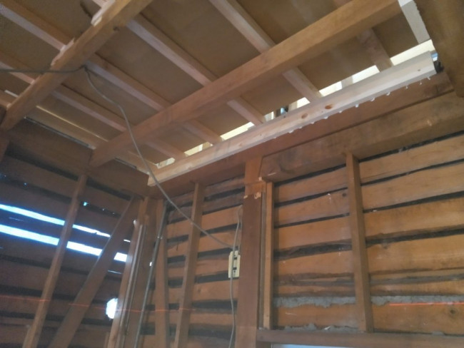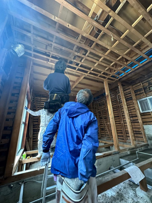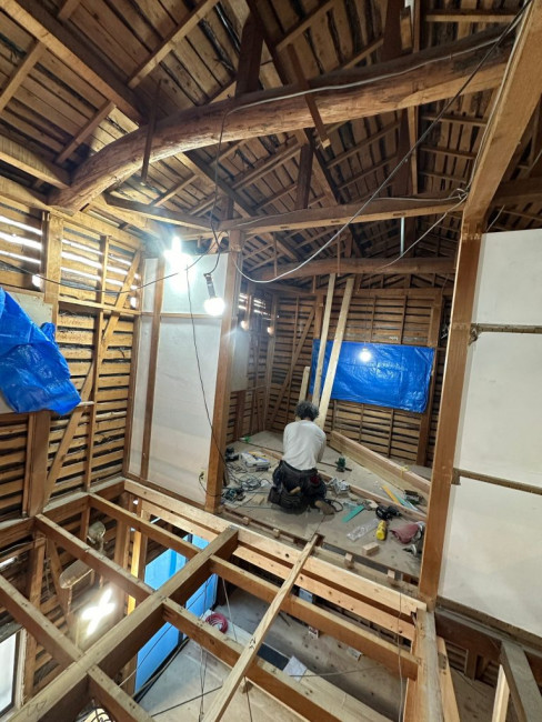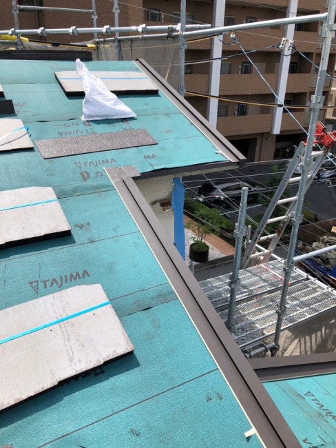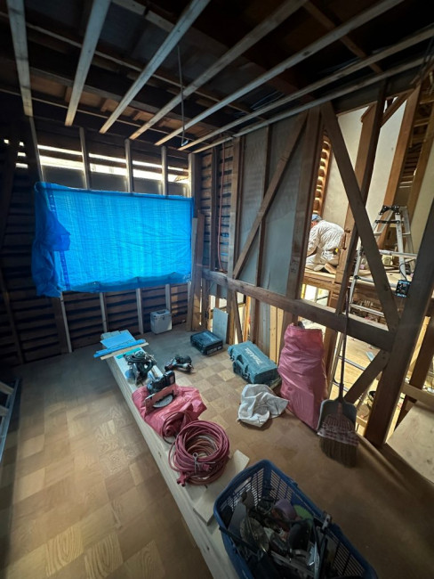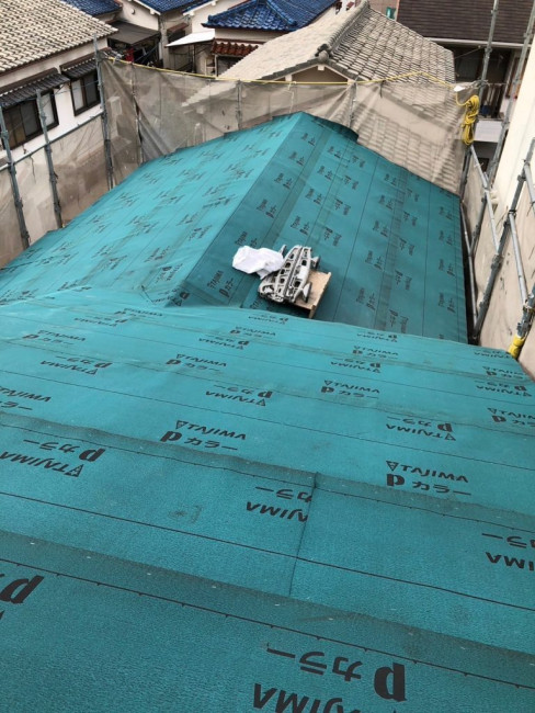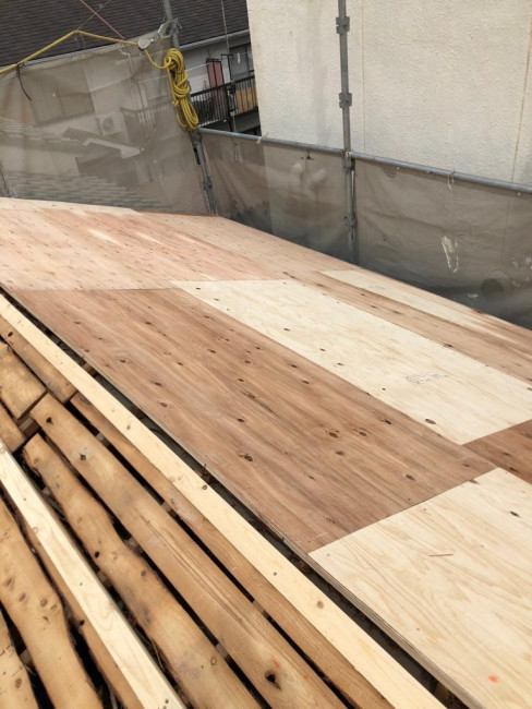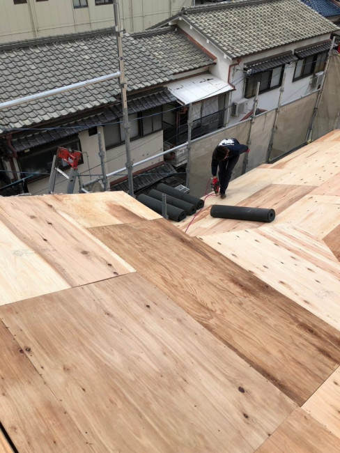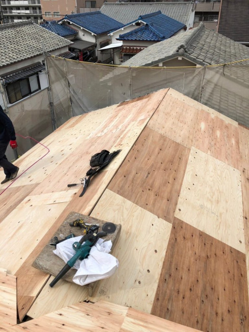 瓦をおろした屋根に改めてしっかりと屋根の下地が組まれました。