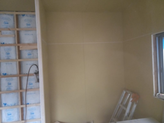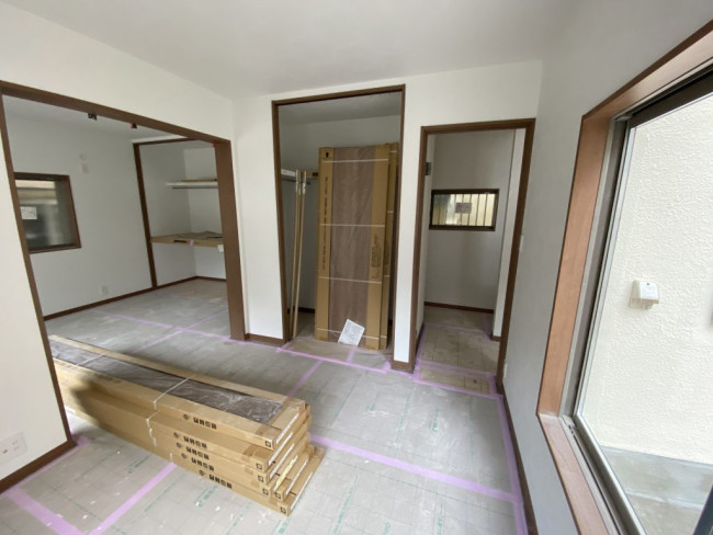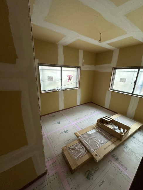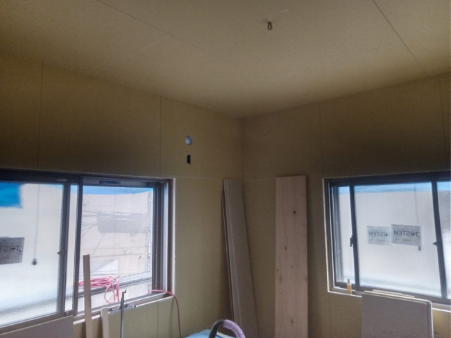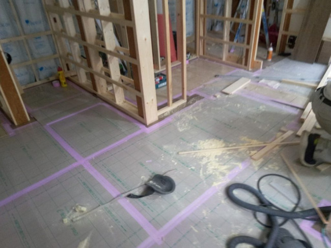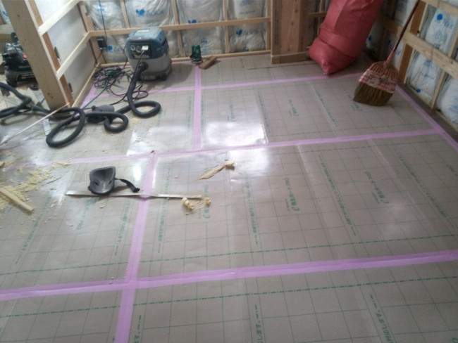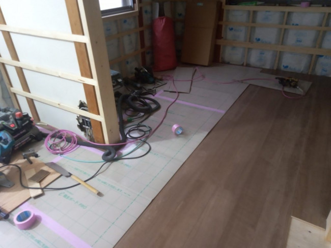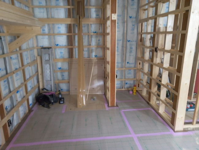 断熱材が入れられた部屋から、いよいよ壁や床が貼られていきます!