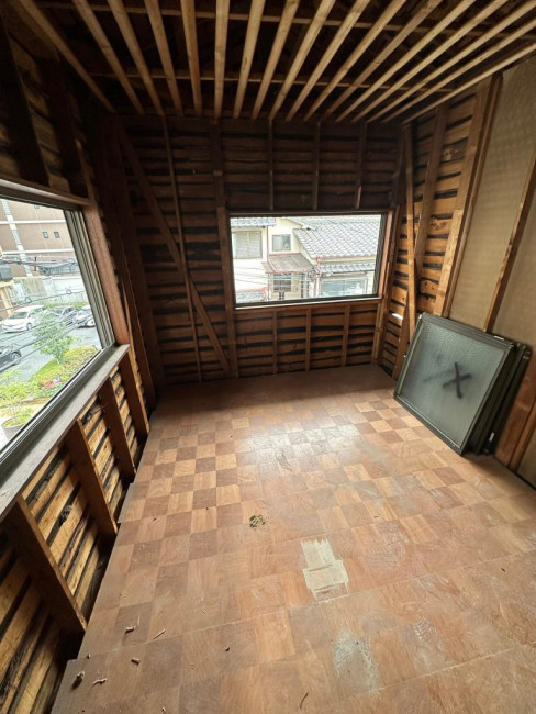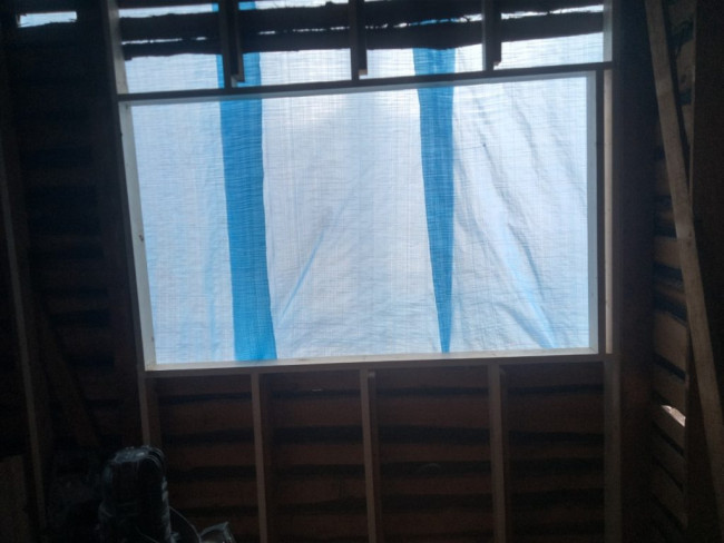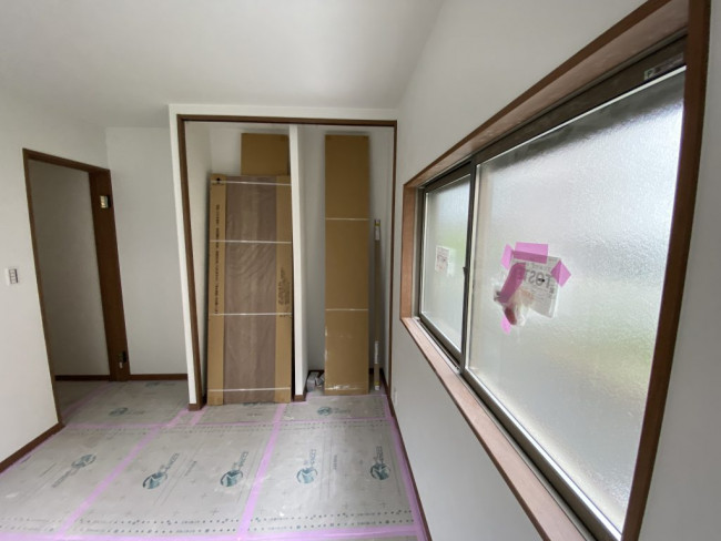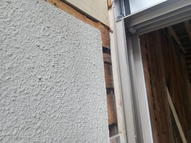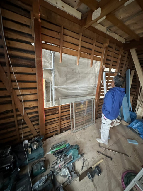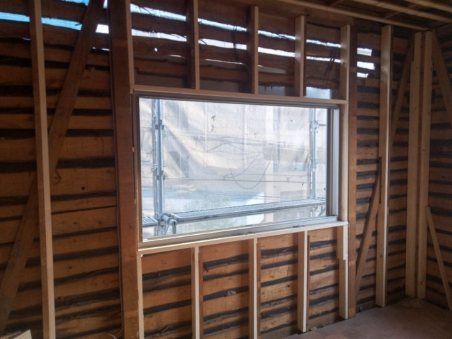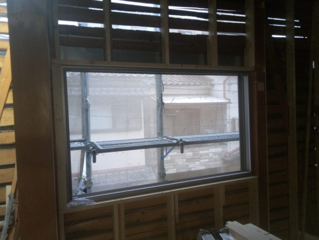 改めて窓が入る箇所へ、わくとサッシが取り付けられました。