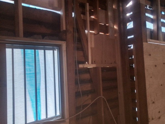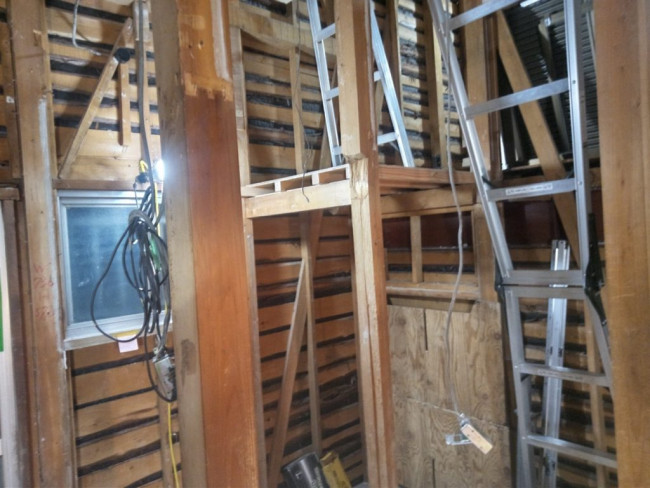 今まで中二階や三階までは梯子を使っての移動でしたが、ようやく全ての階が階段でつながり